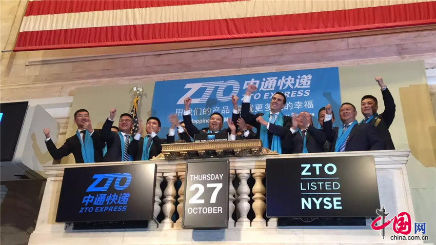 2016年10月27日,中通快递成功登陆美国“纽交所”,